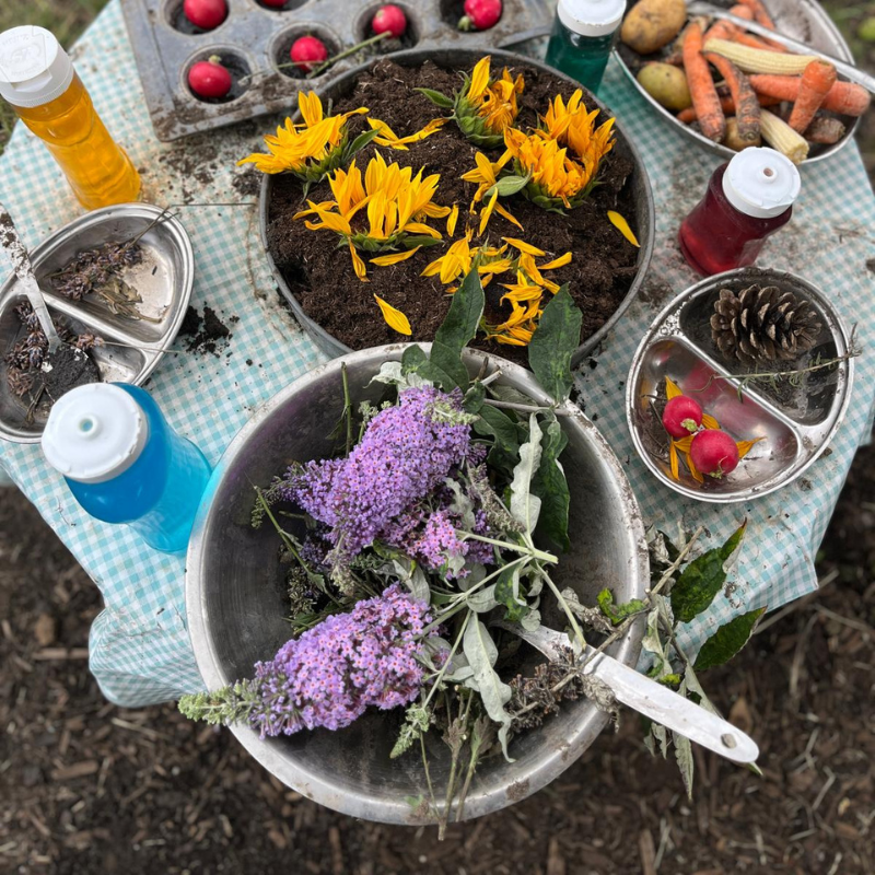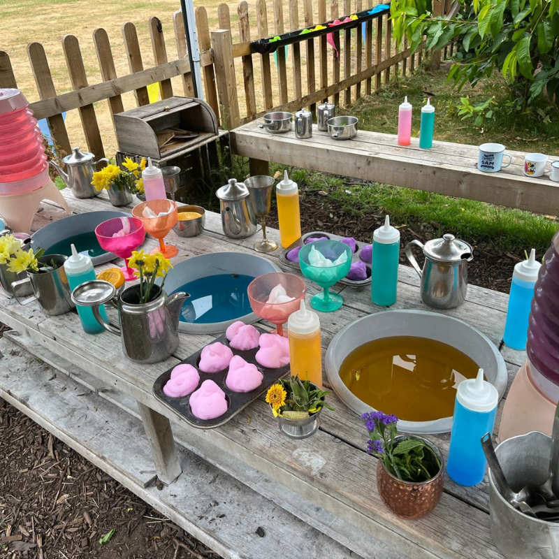 Accompanied by an adult, littles ones can explore the outdoors, with messy play, building, sand & water as well as creative activities.